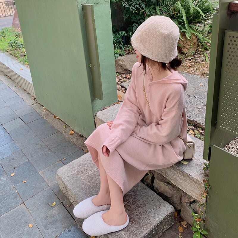 ワンピース 膝丈 ひざ丈 膝下 袖あり 長袖 ドロップショルダー Uネック ストレート Iライン もこもこ モコモコ ふわふわ フード付き ポケット 前開き 伸縮性 かわいい 大人可愛い シンプル カジュアル 大人 おしゃれ お洒落 大人女子 こなれ感 ラフ ラブリー キュート ガーリー ルーズ 主役級 無地 秋 冬 レディース 女性用 デート お出かけ 公園デビュー お泊まり 休日 アウトドア イベント リゾート 旅行 高原 ガーデン 着回し 普段使い 重ね着 スタイル 楽ちん 体系カバー 定番 サイズ | Ritta