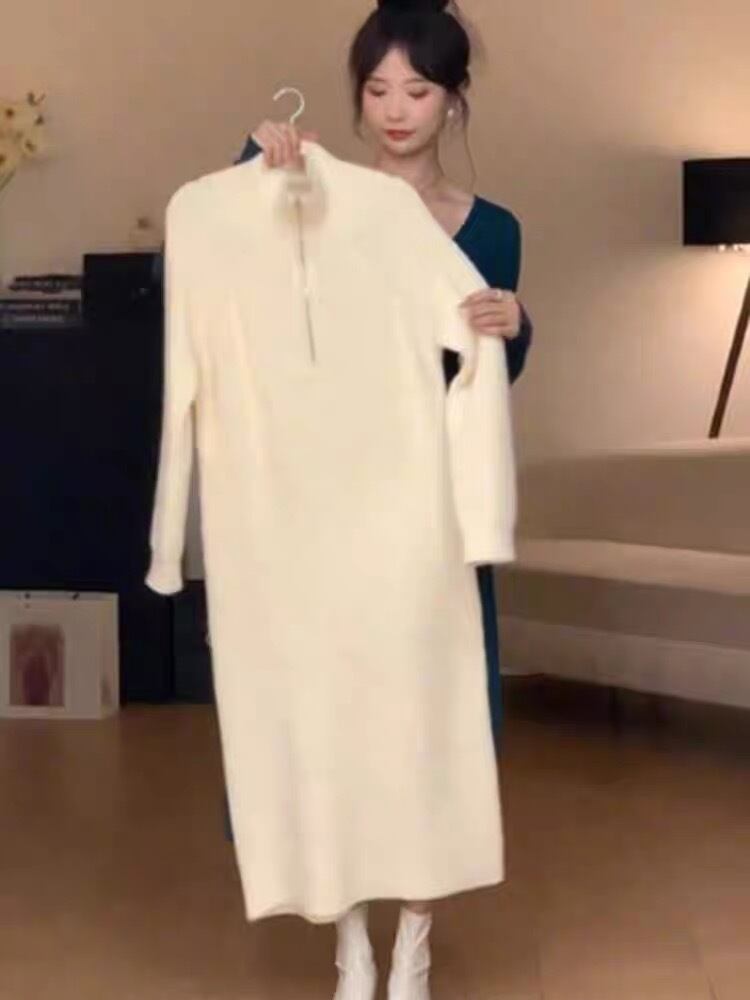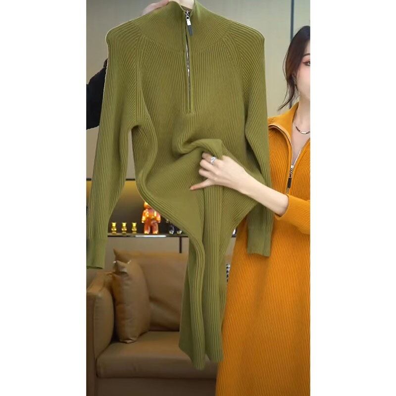 鮮やかなカラーがオシャレなハーフジップのリブ素材のワンピースです。