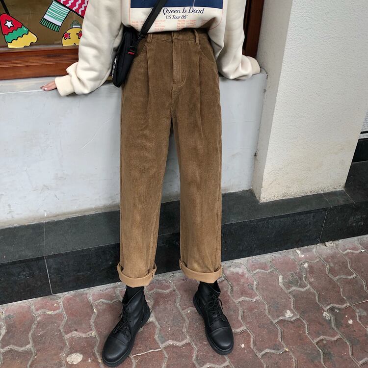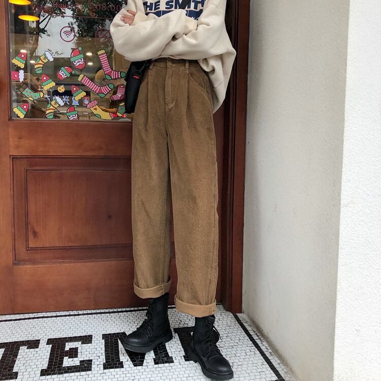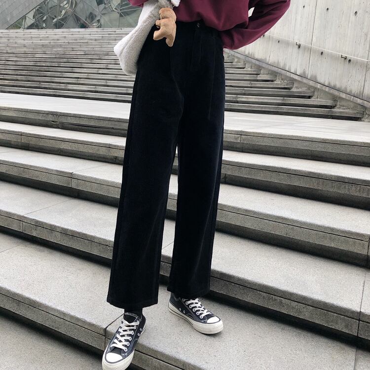 コーデュロイ素材のストレートパンツです。カジュアルでシンプルなコーデがかなう楽ちんアイテムです。リラックスもおしゃれもしたいが叶うアイテムです。