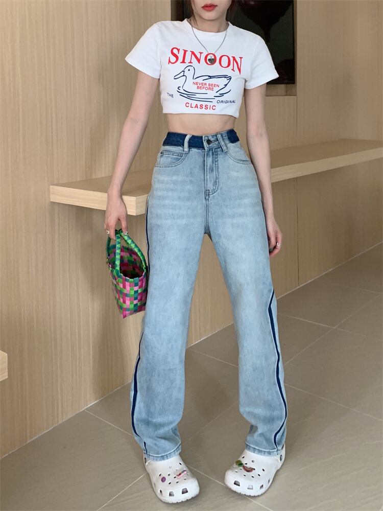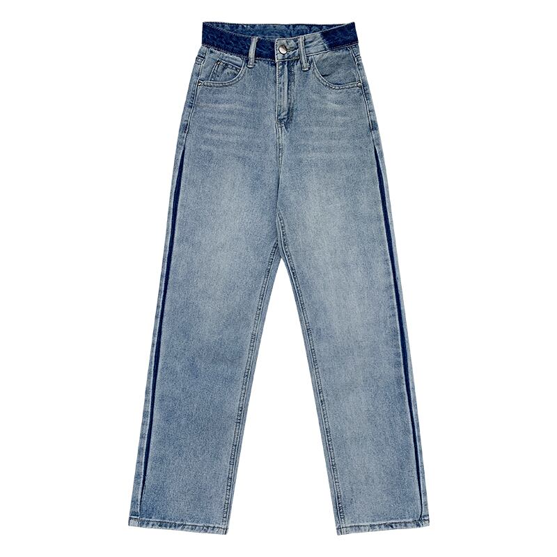 バックシルエットに注目!濃淡の違うブルーが映えるデニムパンツ。