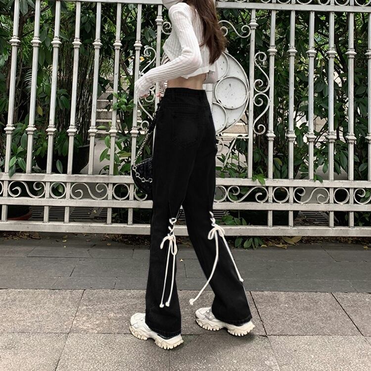 パンツ ズボン Gパン ロング ロング丈 ワイド ブーツカット ポケット 前開き 編み上げ デニム ブルーデニム シンプル カジュアル おしゃれ お洒落 かっこいい レトロ こなれ感 ラフ ボーイッシュ ユニセックス ルーズ 個性的 抜け感 ベーシック ベーシック アメリカン風 無地 春 秋 10代 20代 30代 レディース 女性用 学生 デート お出かけ 休日 運動 スポーツ アウトドア キャンプ イベント 旅行 ショッピング 特別 着回し 普段使い ヘビロテ 韓国系 体型カバー 美脚 脚長 | Ritta