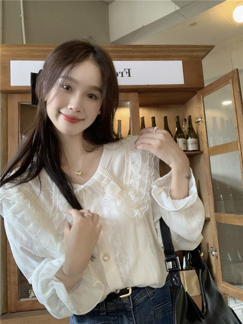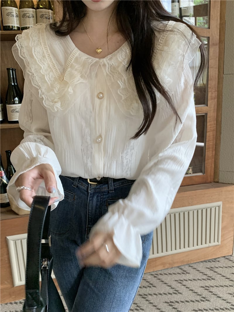 トップス シャツ ブラウス 白シャツ 袖あり 長袖 Uネック フレア シフォン フリル かわいい 大人可愛い きれいめ シンプル カジュアル 大人 上品 おしゃれ お洒落 かっこいい レトロ 大人女子 こなれ感 ラフ ラブリー キュート ガーリー ルーズ 個性的 エレガント モダン 主役級 存在感 フォーマル とろみ感 抜け感 無地 春 夏 秋 冬 10代 20代 30代 レディース デート お出かけ 女子会 休日 着回し 普段使い 韓国 韓国系 オルチャン ファッション コーデ スタイル | Ritta