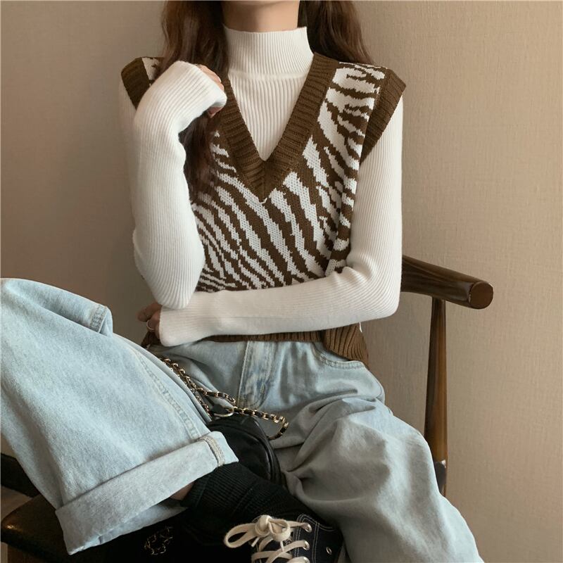 落ち着いたカラーで重ね着コーデをしやすい、ゼブラ柄ショートベスト。