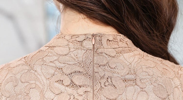 贅沢にたっぷりと使われているレースが重なり合い、ゴージャスに仕上がっているワンピースドレス。
