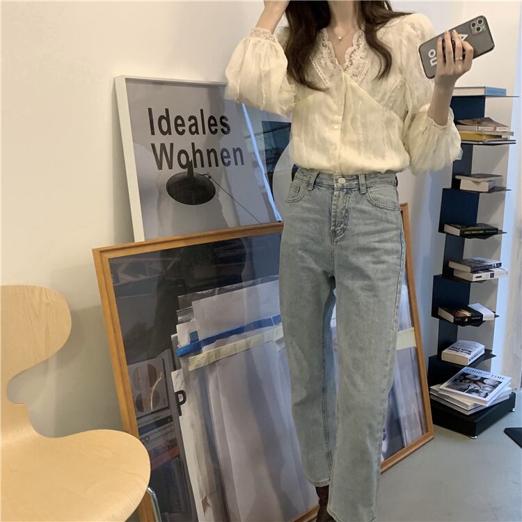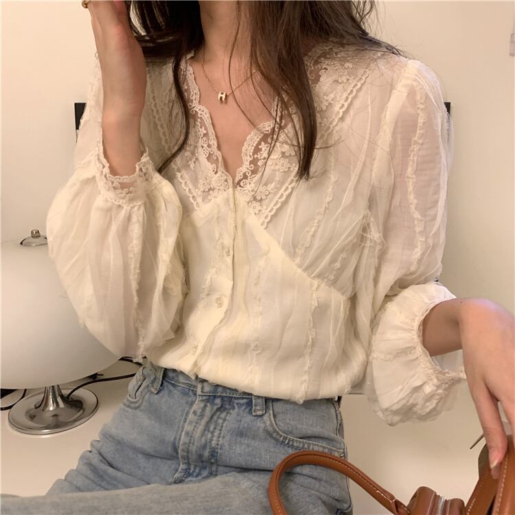 トップス シャツ ブラウス 白シャツ 袖あり 長袖 Vネック スリム タイト 細身 ストレート レース フリル かわいい 大人可愛い きれいめ シンプル カジュアル 大人 上品 おしゃれ お洒落 かっこいい レトロ 大人女子 こなれ感 ラブリー キュート ガーリー ルーズ 個性的 エレガント モダン 主役級 存在感 フォーマル とろみ感 抜け感 無地 春 夏 秋 冬 10代 20代 30代 レディース オフィス ビジネス OL デート お出かけ 女子会 休日 着回し 普段使い 韓国 | Ritta