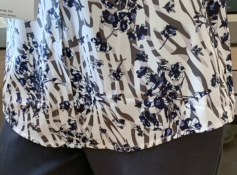 カジュアルからキレイめまで使える総柄長袖シャツ。