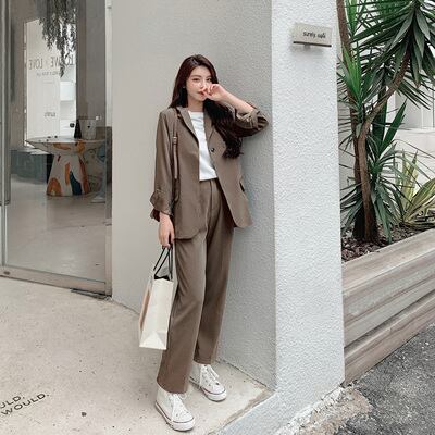 ジャケットとパンツのセットアップです。上品でシンプルなデザインなのでカジュアルにもエレガントにもなるアイテムです。