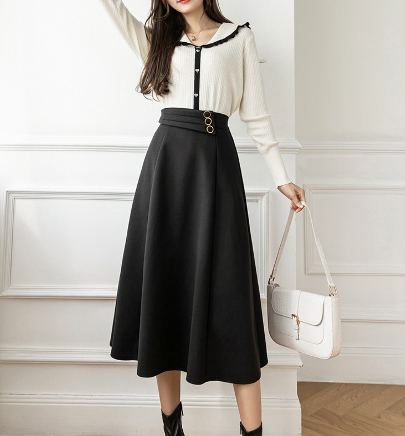 スカート ロングスカート ミディアム丈 ミドル丈 Aライン ハイウエスト ウエストマーク ポリエステル 可愛い かわいい 綺麗め きれいめ シンプル カジュアル 大人 おしゃれ お洒落 レトロ 大人可愛い 大人女子 こなれ感 ガーリー フォーマル 無地 秋 冬 10代 20代 30代 レディース 女性用 ママ オフィス ビジネス OL 通勤 学生 通学 着回し 普段使い ファッション コーデ スタイル モテ 体系カバー 脚長 サイズ S M L XL カラー展開 黒 ブラック 茶色 ブラウン 秋カラー | Ritta