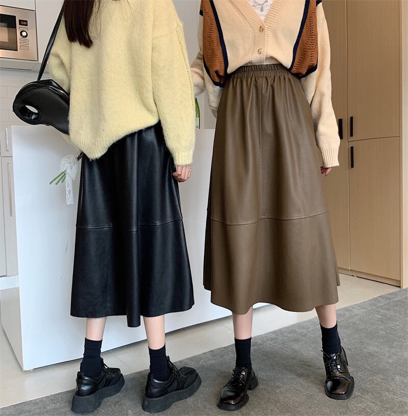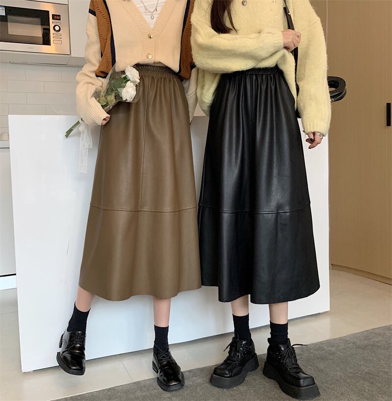 フェイクレザースカート ボトムス ミディアム丈 Aライン ハイウエスト ウエストゴム かわいい 大人可愛い きれいめ シンプル カジュアル 大人 上品 おしゃれ お洒落 レトロ 大人女子 こなれ感 個性的 クール エレガント 主役級 無地 秋 冬 10代 20代 30代 40代 レディース 女性用 デート お出かけ 休日 着回し 普段使い ファッション コーデ スタイル 体型カバー 美脚 フリーサイズ 黒 ブラック 茶色 ブラウン アプリコット カジュアルコーデ フェミニンコーデ こなれ感 | Ritta