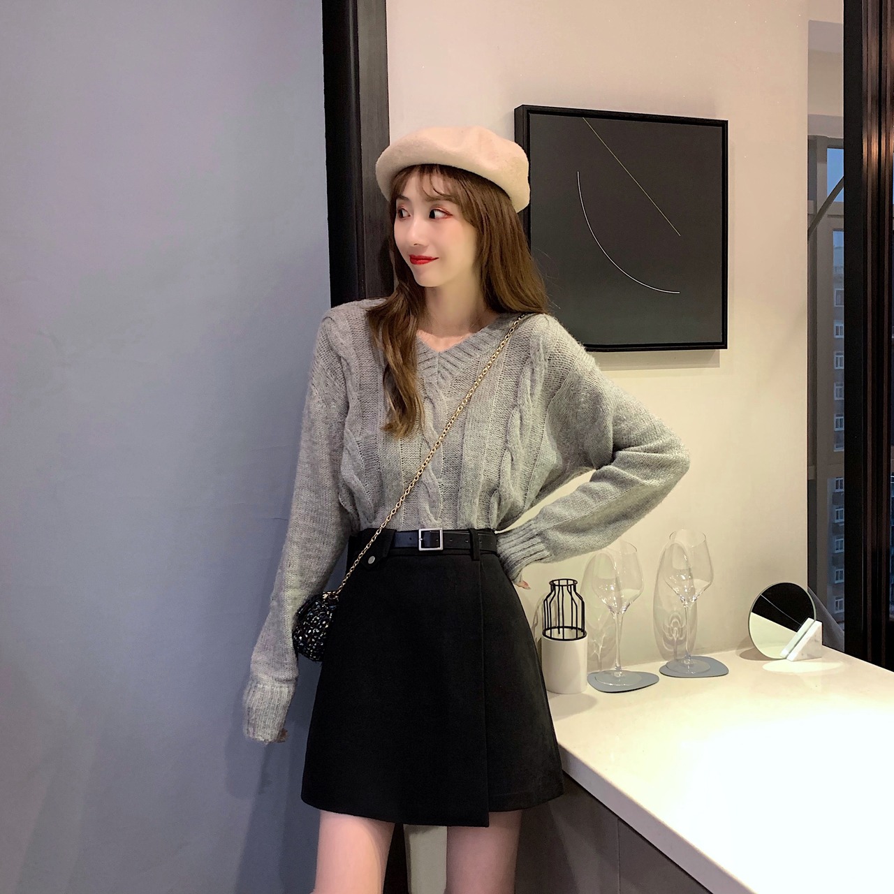 ラップ風デザインとベルトがアクセントのAラインスカート。