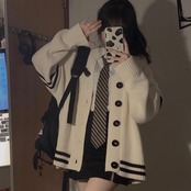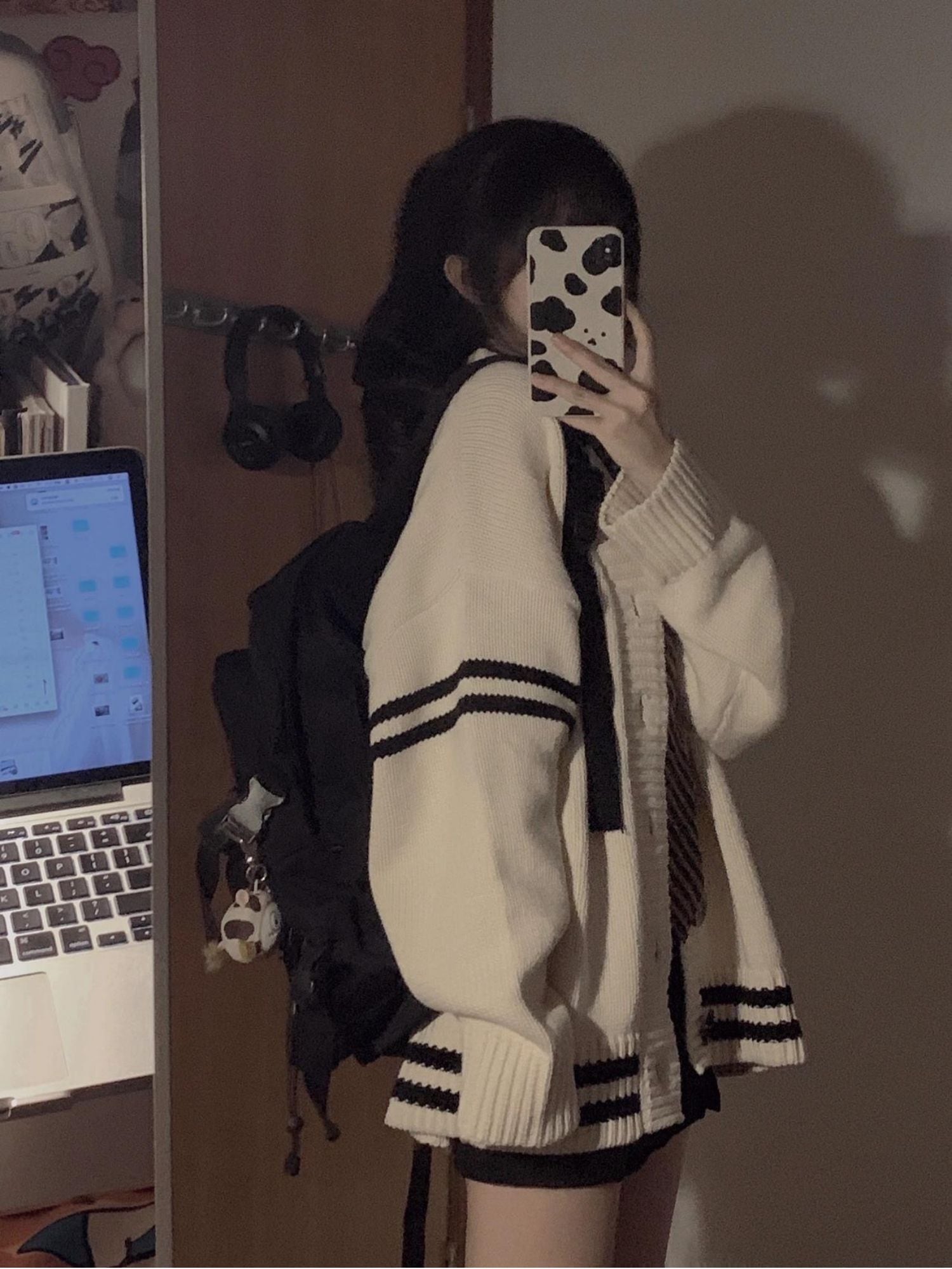 学生風 トップス カーディガン ミディアム丈 袖あり 長袖 ドロップショルダー 萌袖 Vネック 襟なし ストレート ワイド もこもこ モコモコ 前開き ニット かわいい カジュアル おしゃれ お洒落 こなれ感 キュート ガーリー ルーズ 無地 ボーダー シマ 春 秋 冬 10代 20代 レディース 女性用 キッズ 女の子 学生 通学 デート お出かけ 休日 イベント 着回し 普段使い 重ね着 お揃い 双子 オルチャン ファッション コーデ スタイル 体系カバー 定番 S M L XL 2XL ビッグサイズ | Ritta