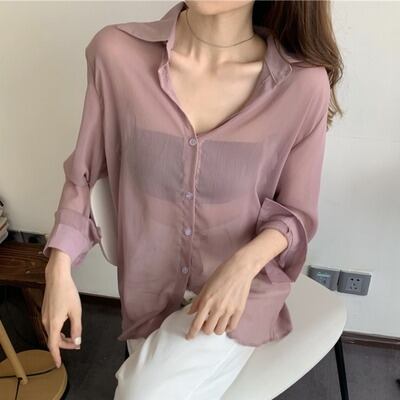 上質なシフォン素材で仕上げた、透け感が美しいシースルーシャツ。
