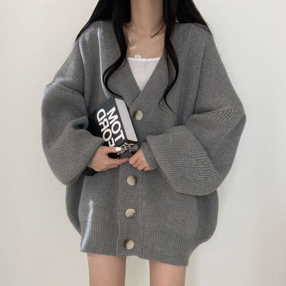 ゆったりしたシルエットが、こなれ感たっぷりのカーディガンが登場。大きく開いたVネックラインは重たくなりがちなニット地デザインをすっきり見せてくれます。