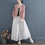 チャイナファッションの要素が取り入れられた、刺繍カーディガンの登場です。長袖のストレートデザインで、程よいオープン感のVネックで着心地もバツグン。衿や裾の周囲に施された刺繍ディテールが、さらに華やかでオシャレな雰囲気を演出します。素材は薄手で、着回し力もバッチリ。
