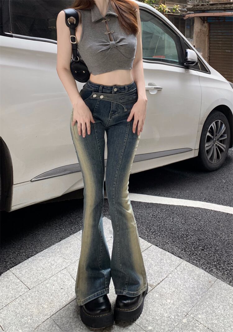 パンツ ズボン Gパン ロング ロング丈 ウエストマーク 細身 裾フレア ポケット ブラックデニム ブルーデニム カジュアル おしゃれ かっこいい レトロ こなれ感 ラフ メンズライク ボーイッシュ 抜け感 カレッジ風 学生風 アメリカン風 アメリカン風 無地 春 夏 秋 10代 20代 30代 レディース 女性用 学生 お出かけ 休日 運動 スポーツ アウトドア キャンプ イベント リゾート 海 ショッピング 着回し 普段使い ヘビロテ 韓国系 美脚 脚長 トレンド S M L ブラック | Ritta