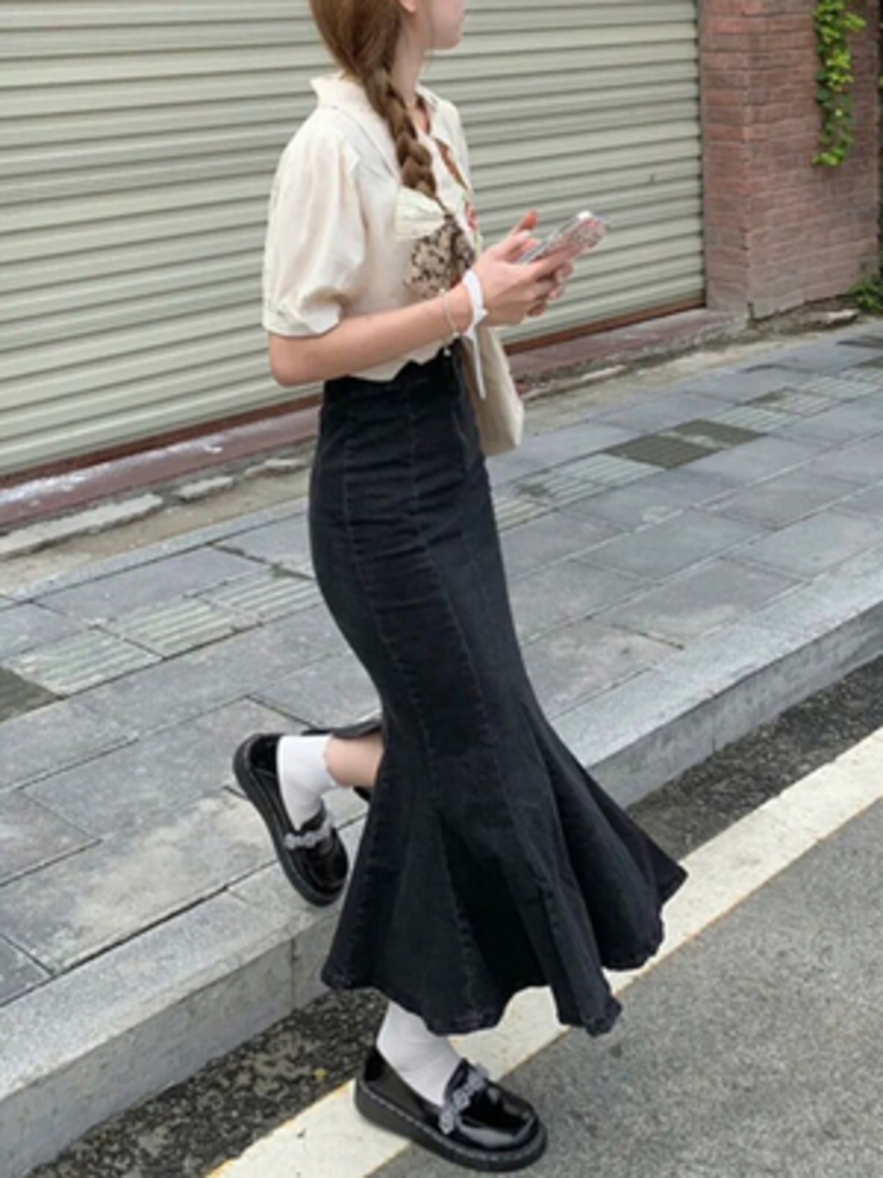 スカート ロングスカート デニムスカート ロング ロング丈 スリム 細身 マーメイド スリット ハイウエスト 薄手 かわいい 大人可愛い シンプル カジュアル 大人 おしゃれ お洒落 大人可愛い 大人女子 こなれ感 キュート ガーリー エレガント 主役級 存在感 無地 春 夏 10代 20代 レディース 女性用 OL 学生 通学 デート お出かけ 女子会 休日 イベント レストラン 着回し 普段使い ファッション コーデ スタイル 楽ちん モテ 脚長 流行 | Ritta