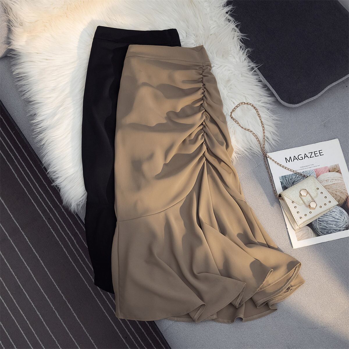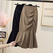 マーメイドのミモレスカートは、サイドのシャーリングデザインがポイントのスタイリッシュな一枚です。ハイウエストで脚長効果が期待でき、マーメイドシルエットで女性らしさもしっかりアピール。サラリとした素材で夏のコーディネートにもぴったりです。無地デザインはオフィスカジュアルからお出かけまで幅広く着こなせるので、着回しにもってこいです。