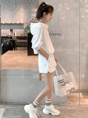 セットアップ パーカー スウェット 白トップス ショートパンツ ショート ショート丈 袖あり 5分袖 五分袖 萌袖 Vネック 襟なし ワイド フード付き ポケット ウエストゴム 透け感 薄手 上下セット 2点セット かわいい 大人可愛い シンプル カジュアル 大人 おしゃれ お洒落 かっこいい 大人女子 こなれ感 ラフ スポーティー キュート ルーズ クール 抜け感 無地 春 夏 レディース 女性用 OL 学生 公園デビュー お泊まり 休日 運動 ジム ヨガ 海 着回し 韓国系 オルチャン ファッション | Ritta