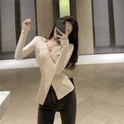 トップス ニットソー セーター 袖あり 長袖 Vネック スリム タイト 細身 ニット かわいい 大人可愛い きれいめ シンプル カジュアル 大人 上品 おしゃれ お洒落 かっこいい レトロ 大人女子 こなれ感 ラフ ラブリー キュート ガーリー モード系 セクシー エレガント モダン 主役級 存在感 とろみ感 抜け感 無地 春 秋 冬 10代 20代 30代 レディース デート お出かけ 女子会 休日 着回し 普段使い 重ね着 韓国 韓国系 オルチャン ファッション コーデ スタイル 楽ちん | Ritta