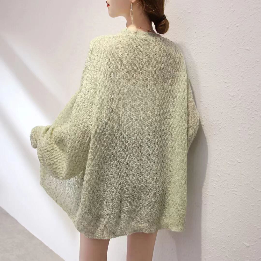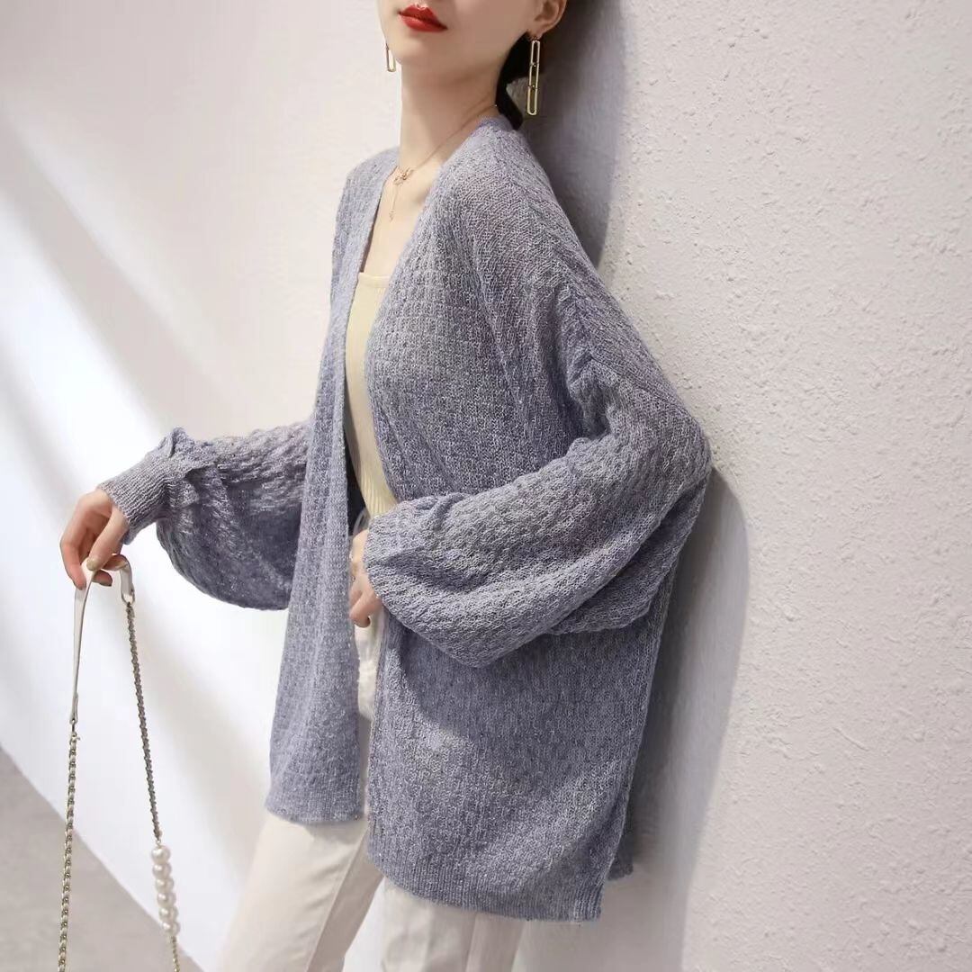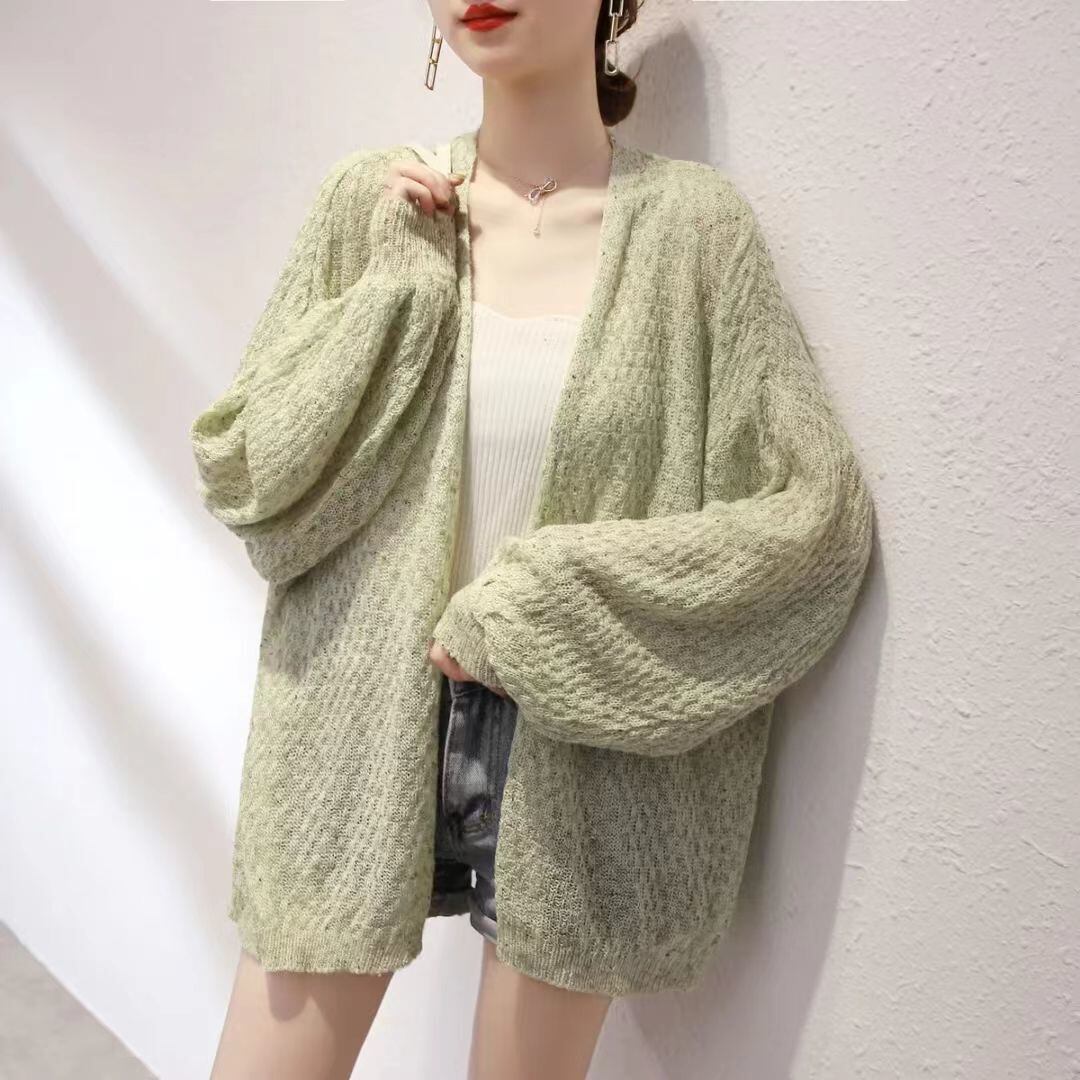 淡いカラーとボリュームスリーブが可愛いニットカーディガン。