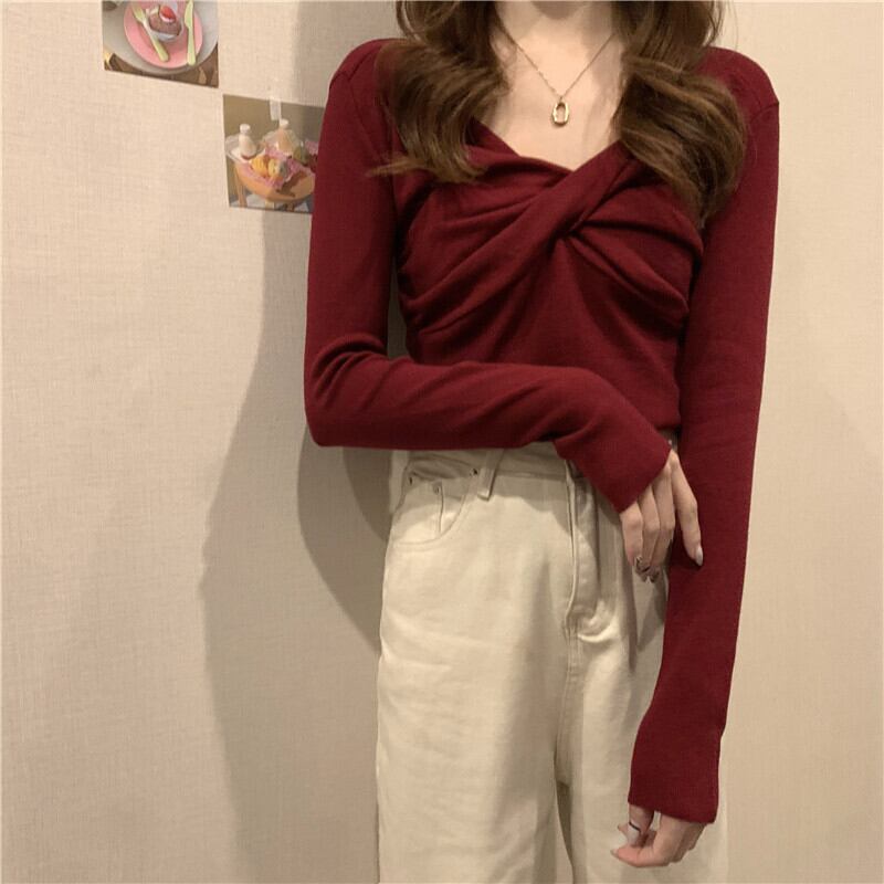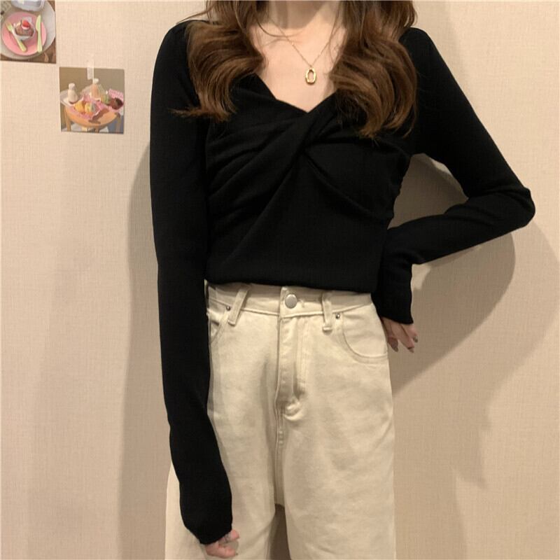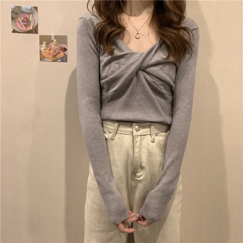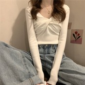 胸元のツイストがスタイルアップしてみせてくれる、可愛らしいニットトップス。