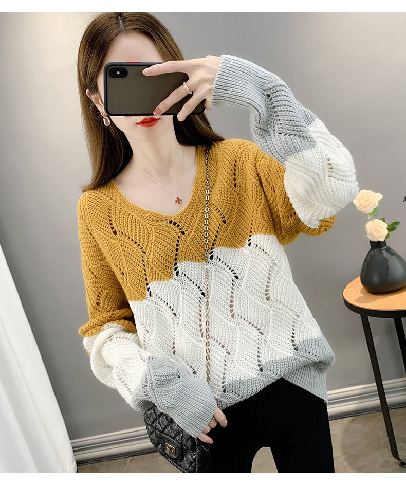 デザイン編み3色ニットプルオーバー トップス 袖あり 長袖 Vネック ストレート 伸縮性 かわいい 大人可愛い きれいめ カジュアル おしゃれ お洒落 こなれ感 個性的 存在感 無地 春 秋 10代 20代 30代 40代 レディース 女性用 お出かけ 休日 着回し 普段使い ファッション コーデ スタイル 楽ちん S M L XL 2XL ゆったり 灰色 グレー 黄色 イエロー カジュアルコーデ フェミニンコーデ ボトムスイン パンツスタイル スカートスタイル | Ritta