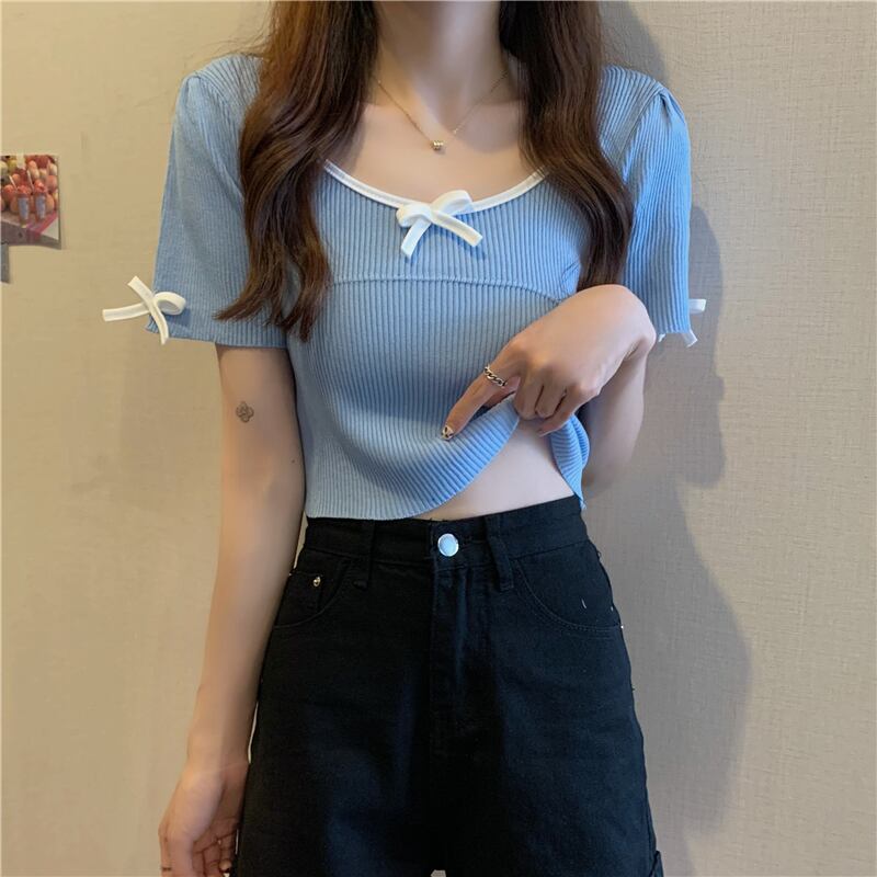 トップス ニットソー プルオーバー ショート ショート丈 袖あり 半袖 Uネック スリム タイト 細身 ストレート リボン リブニット ニット かわいい 大人可愛い きれいめ シンプル カジュアル 大人 上品 おしゃれ お洒落 かっこいい レトロ 大人女子 こなれ感 ラフ ラブリー キュート ガーリー ルーズ 個性的 クール モード系 セクシー エレガント モダン 主役級 存在感 とろみ感 抜け感 無地 春 夏 秋 冬 10代 20代 30代 レディース デート お出かけ 女子会 休日 着回し | Ritta