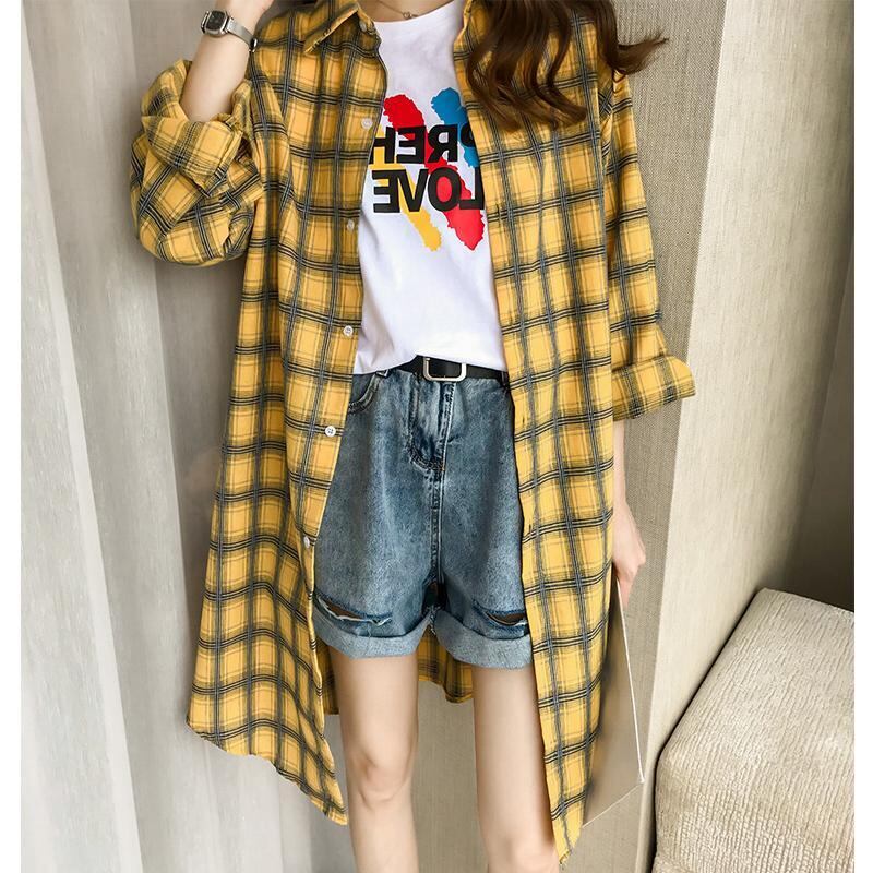 カジュアルスタイルの定番的デザイン、総柄チェックの長袖シャツ。ロング丈だから、気になるヒップや太もも部分をさり気なくカバーしてくれます。