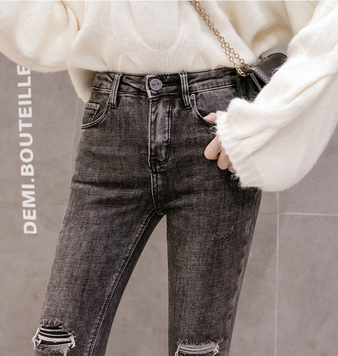 足首のカットされたダメージで、サンダルでも個性的に着こなせます。