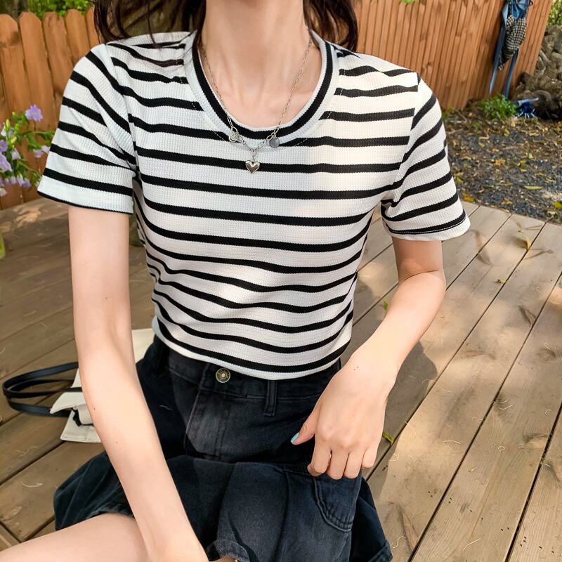半袖ボーダートップス Tシャツ プルオーバー ショート丈 袖あり 半袖 ラウンドネック ストレート リブ 伸縮性 かわいい 大人可愛い シンプル カジュアル おしゃれ お洒落 ラフ 存在感 ボーダー 夏 10代 20代 30代 40代 レディース 女性用 お出かけ 休日 リゾート 旅行 着回し 普段使い ファッション コーデ スタイル 楽ちん 定番 S M L XL ゆったり 白 ホワイト 黒 ブラック ピンク カジュアルコーデ ボトムスイン ベーシックアイテム | Ritta