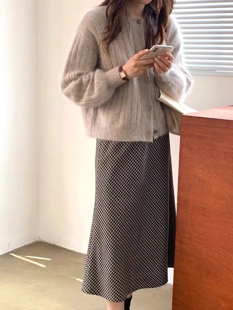 きれいめで上品なカーディガンなので、オフィスにもおすすめです。