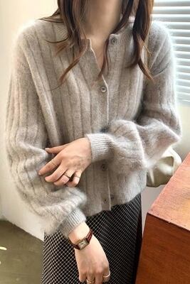 トップス セーター カーディガン 前開き 袖あり 萌袖 ボリューム袖 長袖 Uネック ラウンドネック 襟なし もこもこ モコモコ ふわふわ ニット 厚手 きれいめ シンプル カジュアル 大人 大人可愛い 大人女子 大人カラー 女性用 上品 存在感 おしゃれ ラフ 無地 春 10代 20代 30代 40代 ビジネス OL デート お出かけ 着回し こなれ感 普段使い コーデ モテ M L XL 2XL 3XL ブラック ブラウン グレー イエロー カラーバリエーション 抜け感 コーディネート ゆる袖 通勤 | Ritta