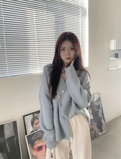 ふんわりとした薄手のニット素材を使用しているので、重ね着もしやすく、季節の変わり目に重宝します。