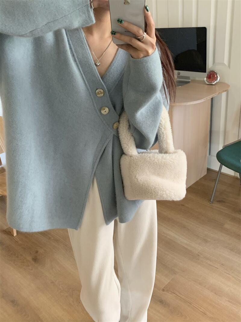 個性的 トップス ニットソー カーディガン 白トップス ショート丈 袖あり 長袖 ボリューム袖 萌袖 Vネック 襟なし ストレート Iライン アシンメトリー 切り替えデザイン もこもこ モコモコ ふわふわ 前開き 透け感 ニット 薄手 きれいめ カジュアル 大人 おしゃれ お洒落 かっこいい 大人可愛い 大人女子 こなれ感 ラフ キュート 個性的 クール セクシー エレガント 存在感 とろみ感 無地 春 秋 10代 20代 30代 レディース 女性用 通勤 学生 通学 デート お出かけ 女子会 お泊まり | Ritta