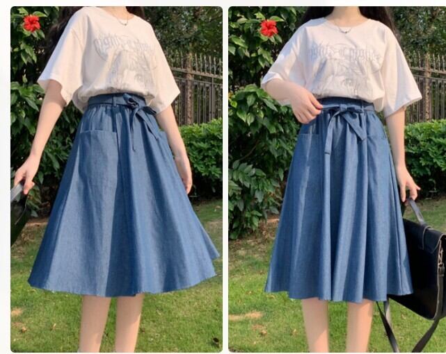 ロング丈とショート丈を選べるデニムスカート。