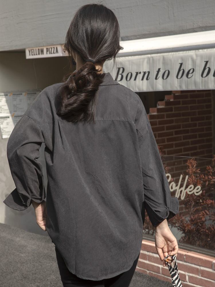 大人っぽ長袖シャツ トップス 袖あり 長袖 ドロップショルダー 襟付き ストレート ポリエステル シンプル カジュアル 大人 上品 おしゃれ お洒落 かっこいい 大人女子 こなれ感 ラフ メンズライク クール エレガント とろみ感 無地 秋 10代 20代 30代 40代 レディース 女性用 お出かけ 休日 着回し 普段使い 重ね着 楽ちん 穴あき 定番 S M L XL 2XL 黒 ブラック 灰色 グレー カジュアルコーデ ボトムスイン 大人っぽコーデ レイヤードコーデ | Ritta
