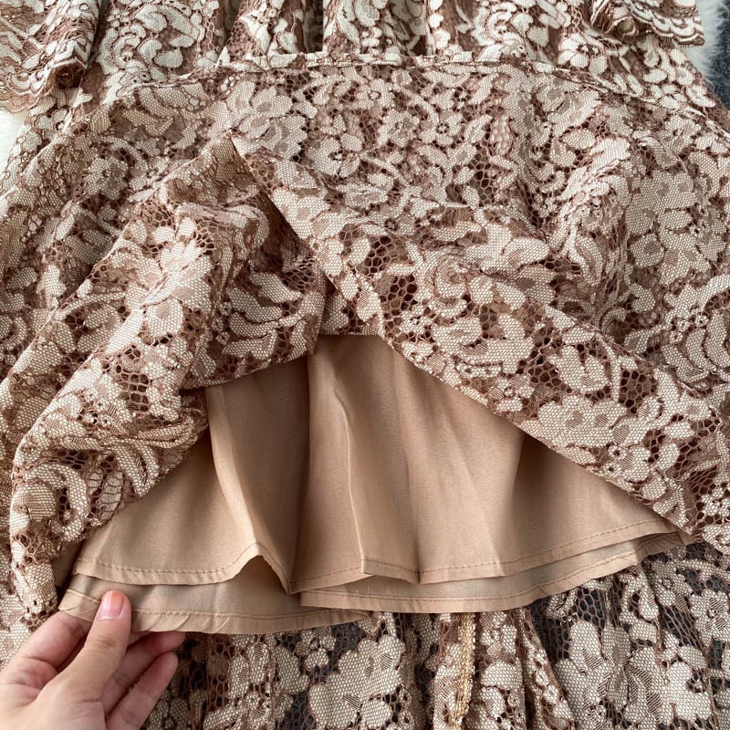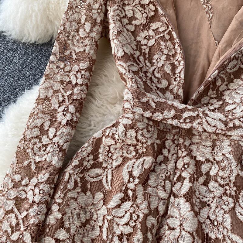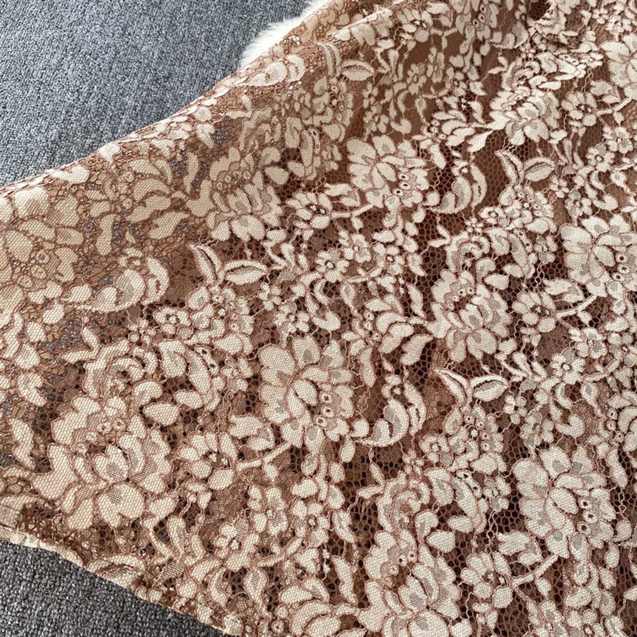 レース生地をたっぷり使用し、女性らしいシルエットと上品な印象を演出するワンピース。