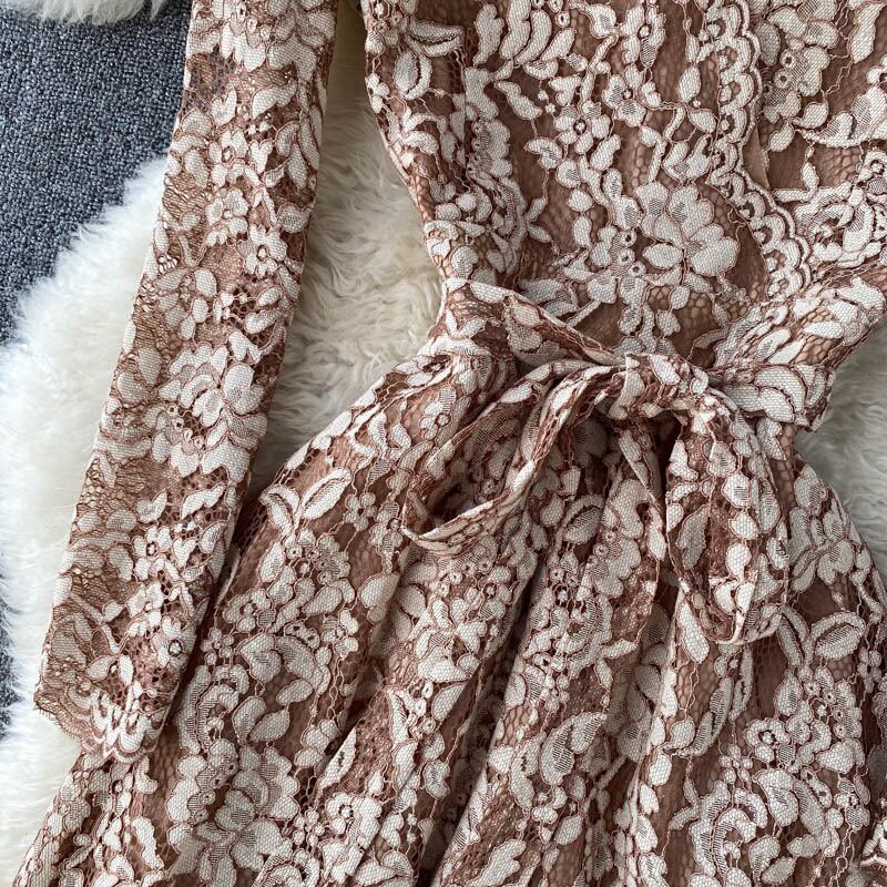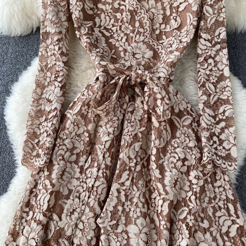 ワンピース フレアワンピース ワンピドレス 膝下 ミモレ丈 袖あり 長袖 Vネック 襟なし フレア レース リボン ウエストマーク ウエストリボン 透け感 かわいい 大人可愛い きれいめ 上品 おしゃれ お洒落 レトロ 大人女子 こなれ感 ラブリー キュート ガーリー エレガント 存在感 フォーマル 花柄 春 秋 謝恩会 結婚式 二次会 披露宴 10代 20代 レディース 女性用 キッズ 女の子 学生 通学 お出かけ 休日 パーティー イベント ホテル レストラン 着回し 脚長 定番 S M L XL | Ritta