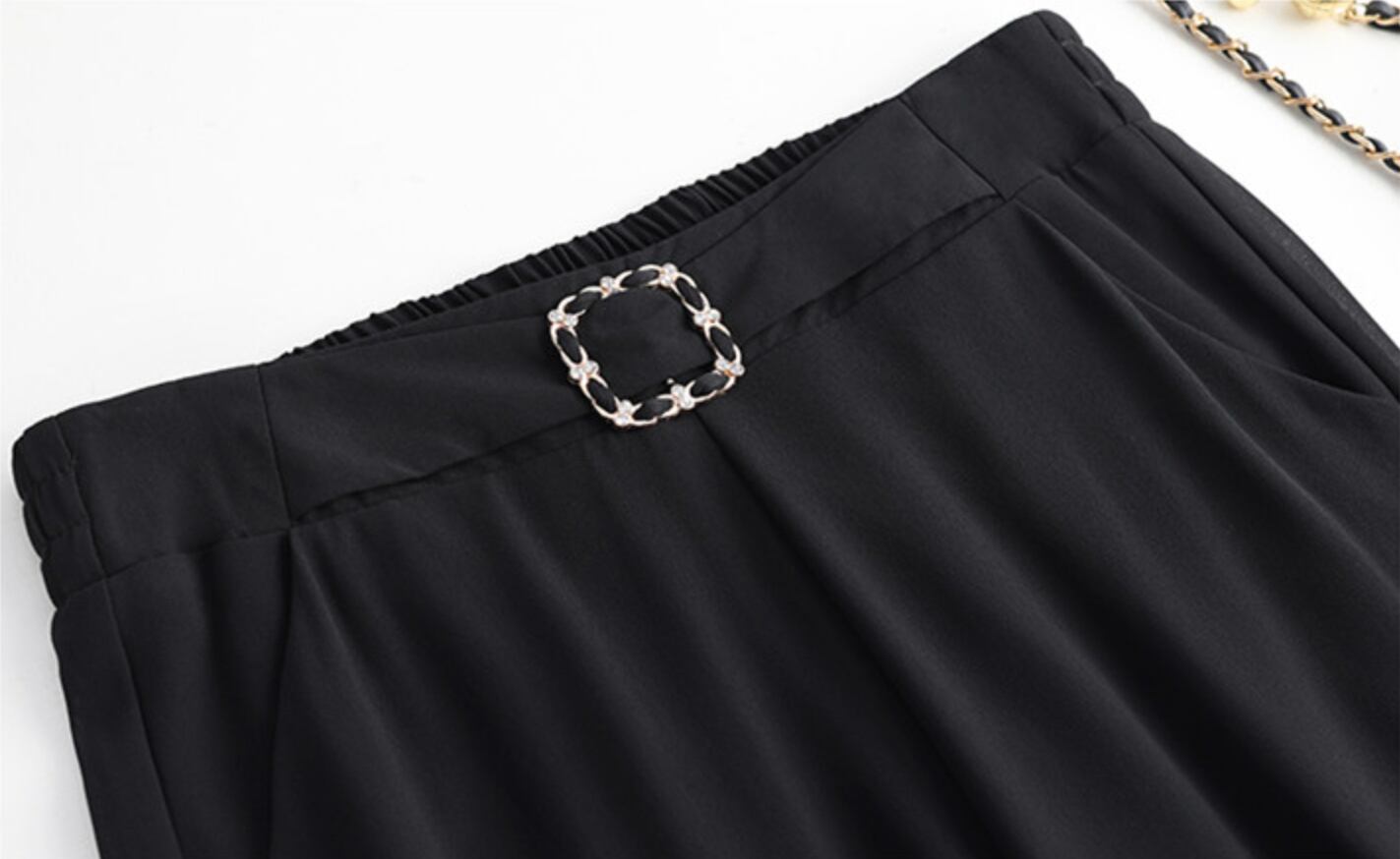 春夏必須のアイテム、ワイドパンツ。大人の女性にも似合う、上品な印象を与えるデザインです。脚長効果も期待でき、細く見えるシルエットが特徴のハイウエスト仕様。ロング丈で足首が見えるので、足元を華奢に見せてくれます