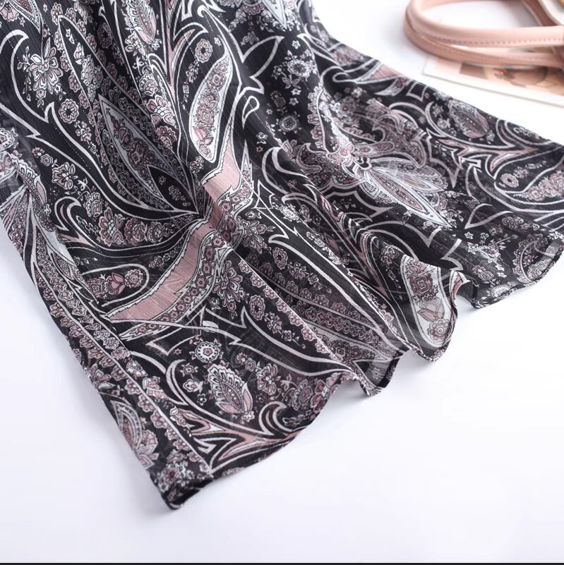 ハリ感があり、とろみ感のある薄手の素材で、履き心地も抜群。フラワープリントなので、おしゃれ感も抜群です。ハイウエストで脚長効果も抜群なので、女性らしいスタイルを演出してくれますよ。