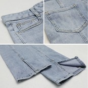 9分丈のデニムパンツです。カジュアルなデザインで、小さいサイズから大きいサイズまで多数取り揃えています。ポケットも付いており、使い勝手も抜群。春、夏、秋のロングシーズンに着用でき、シーンを選ばず、普段使いからお出かけまで幅広く活躍してくれます。