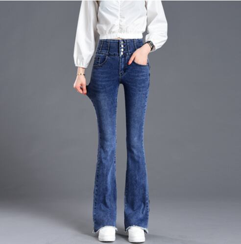 ハイウエスト4連ボタンフレアデニムパンツ ボトムス ハイウエスト デニム ブルーデニム シンプル カジュアル おしゃれ お洒落 かっこいい こなれ感 無地 春 夏 秋 10代 20代 30代 40代 レディース 女性用 お出かけ 休日 リゾート 旅行 海 着回し 普段使い ファッション コーデ スタイル 楽ちん 美脚 脚長 青 ブルー 灰色 グレー ライトブルー カジュアルコーデ フェミニンコーデ きれいめコーデ ボトムスイン スタイルアップ | Ritta