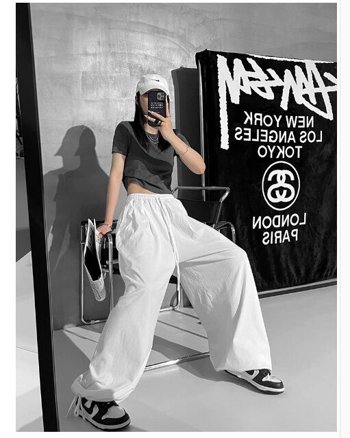 スポーティーでクールな印象のスウェットパンツワイドパンツ。