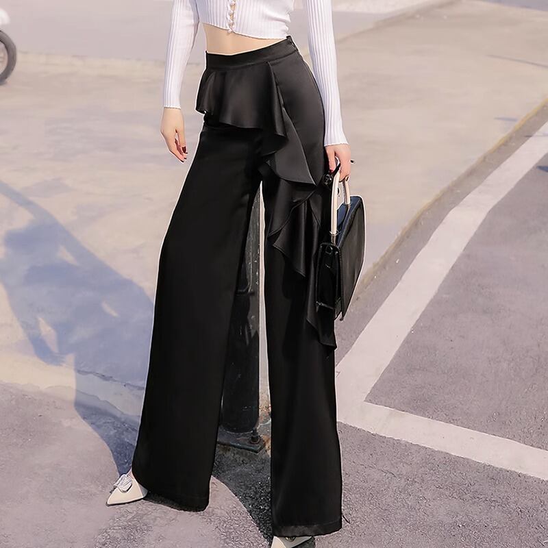 ボトムス ズボン ワイドパンツ フレアパンツ フレア ワイド シフォン フリル シルク チャック サイドチャック 大人可愛い きれいめ 上品 おしゃれ お洒落 大人女子 可愛い こなれ感 ラブリー キュート ガーリー 個性的 セクシー エレガント ゴージャス とろみ感 無地 春 夏 結婚式 二次会 披露宴 ダンス 10代 20代 30代 デート お出かけ 休日 パーティー イベント リゾート ホテル レストラン 着回し 普段使い ファッション コーデ スタイル 美脚 脚長 楽ちん サイズ展開 ブラック 黒 | Ritta