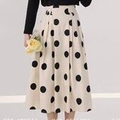 水玉柄のスカートとレースのパススリーブのキュートなデザインのアイテムセット