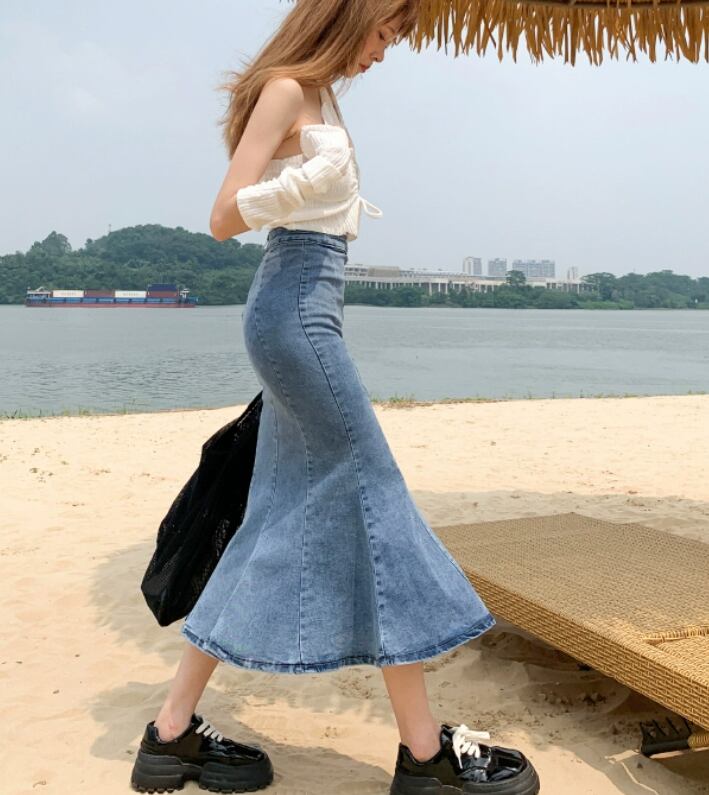華やかさと上品さを兼ね備えたデニムマーメイドスカートが登場しました!大人可愛いデザインでありながら、存在感のあるスリットが女性らしい魅力を引き出してくれます。