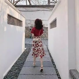 セットアップ Tシャツ フレアスカート ミモレ丈 袖あり 半袖 ラウンドネック 襟なし フレア Aライン ツーピース かわいい 大人可愛い きれいめ シンプル カジュアル 大人 上品 おしゃれ かっこいい 大人可愛い 大人女子 こなれ感 ラブリー キュート モダン 柄 フラワー プリント 春 秋 10代 20代 30代 レディース 女性用 通勤 学生 通学 デート お出かけ 女子会 休日 着回し 普段使い 韓国系 コーデ スタイル S M L XL 2XL レッド | Ritta