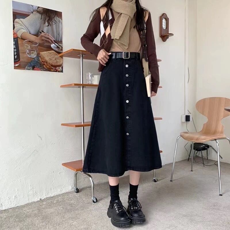 デニムスカート スカート ボトムス ロングスカート 膝下 ミモレ ミモレ丈 ロング ロング丈 ミディアム丈 ミドル丈 スリム Aライン 台形 ハイウエスト ボタン デニム かわいい 大人可愛い シンプル カジュアル 大人 おしゃれ お洒落 オトナ可愛い こなれ感 無地 春 夏 秋 冬 10代 20代 30代 40代 レディース 女性用 ママ マタニティ 学生 通学 デート お出かけ 公園デビュー 女子会 休日 アウトドア ショッピング 普段使い 韓国 韓国系 ファッション コーデ スタイル 大きいサイズ | Ritta