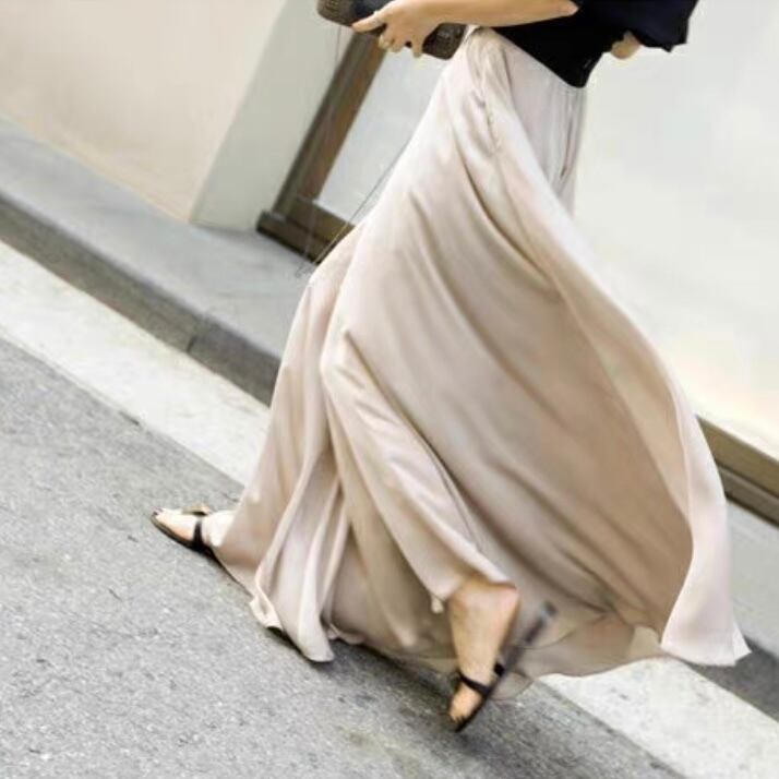 歩く度に足元がなびくデザインがオシャレなワイドパンツ