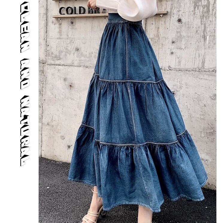 スカート ボトムス ロングスカート デニムスカート 膝下 ロング ロング丈 ミドル丈 フレア Aライン ハイウエスト ウエストゴム かわいい 大人可愛い シンプル カジュアル 大人 おしゃれ お洒落 レトロ アジアン オトナ可愛い 大人女子 こなれ感 ラフ ガーリー ルーズ 無地 春 夏 秋 10代 20代 30代 レディース 女性用 ママ マタニティ デート お出かけ 公園デビュー 女子会 休日 アウトドア リゾート 旅行 海 プール ショッピング 普段使い 韓国系 ファッション コーデ ブルー 青 | Ritta